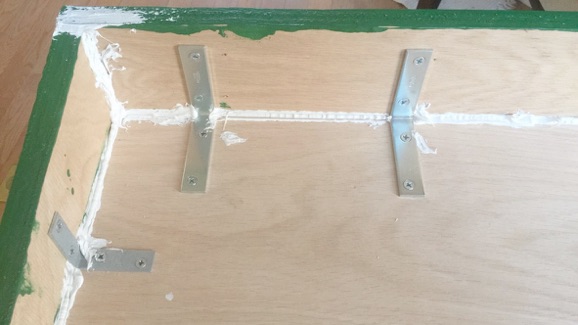The slanted roof was attached to boards that were themselves attached with angle braces; then gaps were sealed tight.