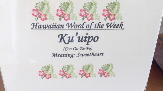 And we learned from this sign in the lobby what is likely the best word we’ve learned in Hawaiian... Ku’uipo... sweetheart, pronounced coo-oo-ee-po.