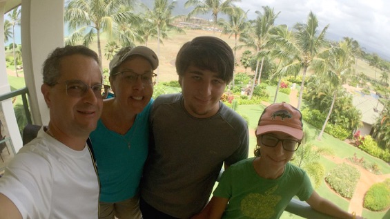 We have captured “heading home” photos for several years - one final family photo, usually captured on the balcony, taken just before we check out and get into the car to drive off. This is that photo from Kauai.