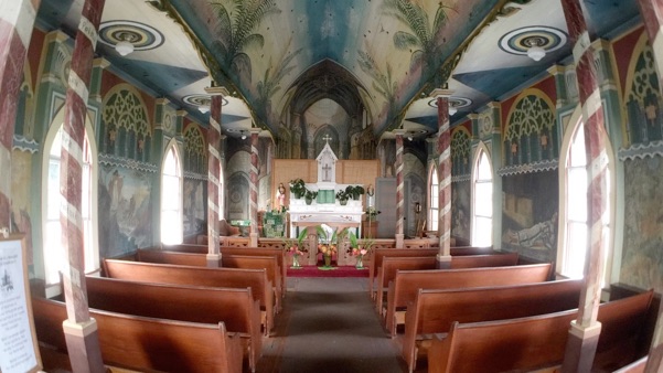 -St. Benedict Painted Church... much like stained glass windows were used to tell the stories of the Bible to generations who could not read nor write; the same was done here, but they used the walls to tell the stories instead of the windows.