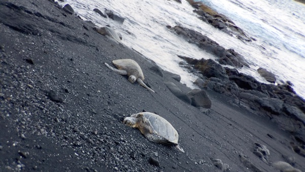 -Black Beach / Punalu’u, where we saw sea turtles on the beach and also kicked Abby’s soccer ball around