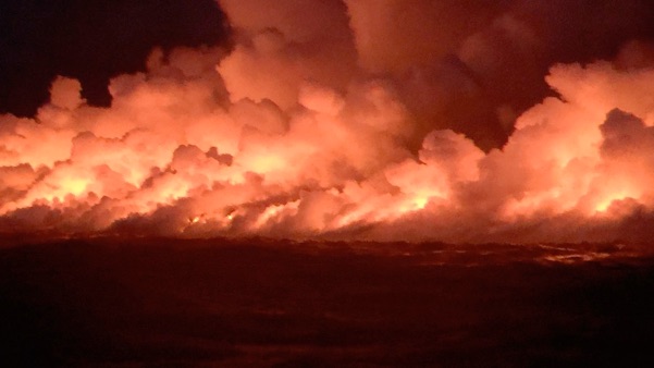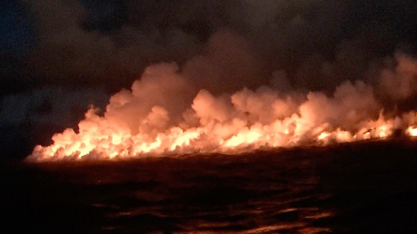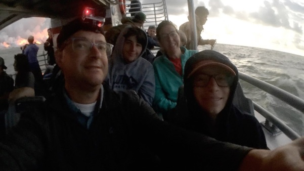 riding a boat from Hilo to see the two-mile wide lava flow from Kilauea Volcano’s Fissure 8 enter into the sea - A M A Z I N G!