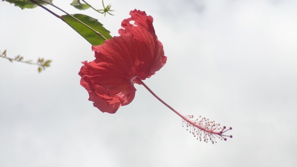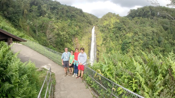 red hibiscus, near Akaka FallsFalls captured by Abby, as she pointed the camera up over our heads to where it was flowering