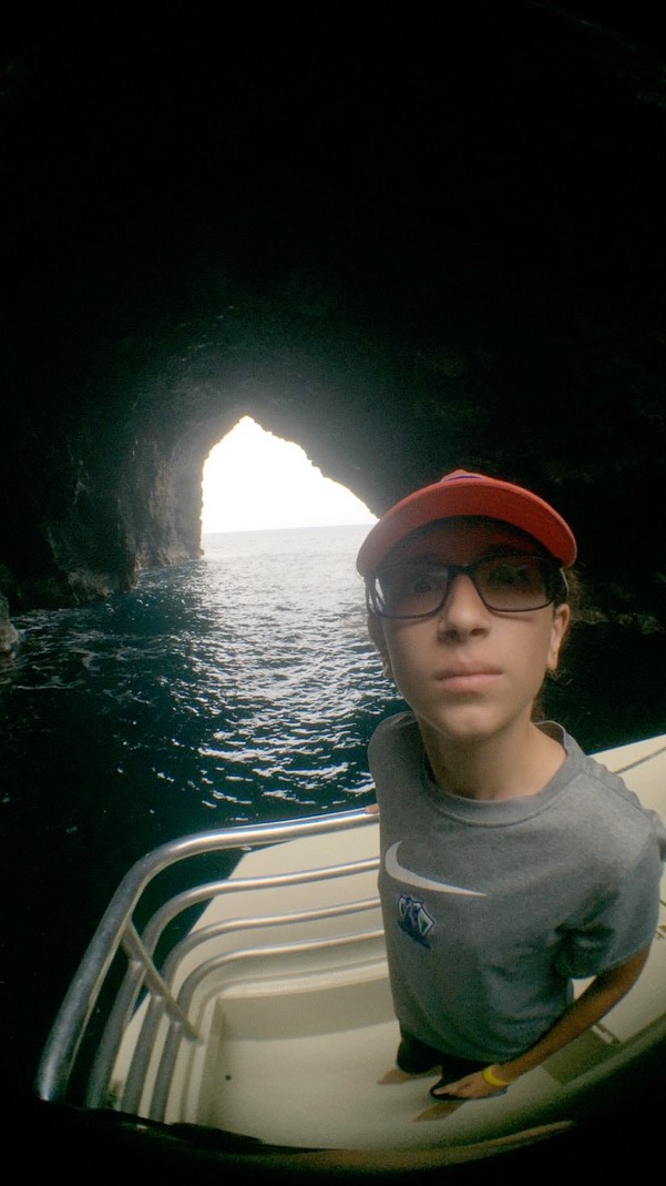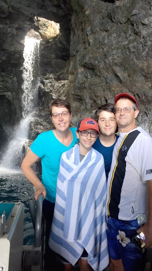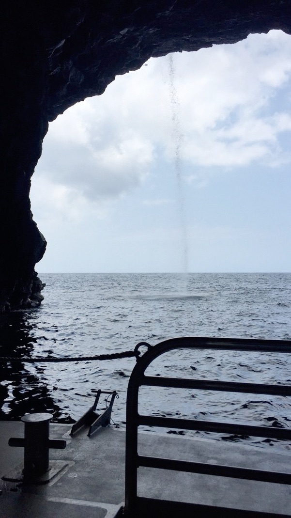This sea cave has a waterfall cascading across its entrance and our captain drove us right through it and we were soaked by the cool (not cold) water - awesome!