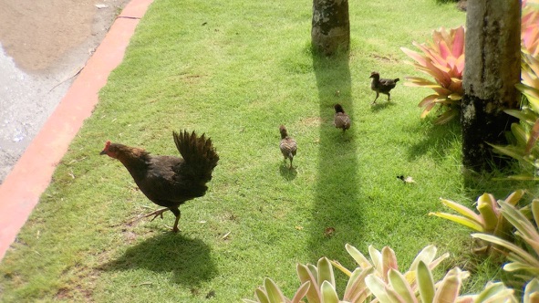 -chickens, even in the rental car parking lot... they are apparently protected as nobody knows if any one chicken is from the original royal Tahitian rooster family, so they just roam free in many many places on all three islands (we saw none in 2000).