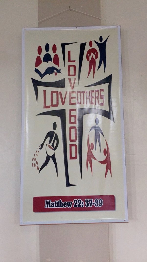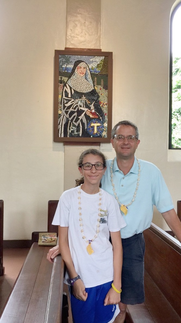 After Mass, Abby and I looked at the mosaics on the wall, which are similar to St. Michael the Archangel in Kona...