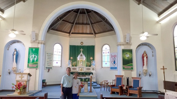 She also recommended that we try to visit St. Rapheal, the first Church on Kauai. We weren’t sure we could do that, but then, after lunch we saw a sign pointing us 3/4 of a mile down the road to St. Rapheal.