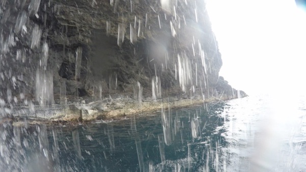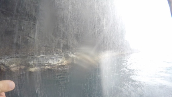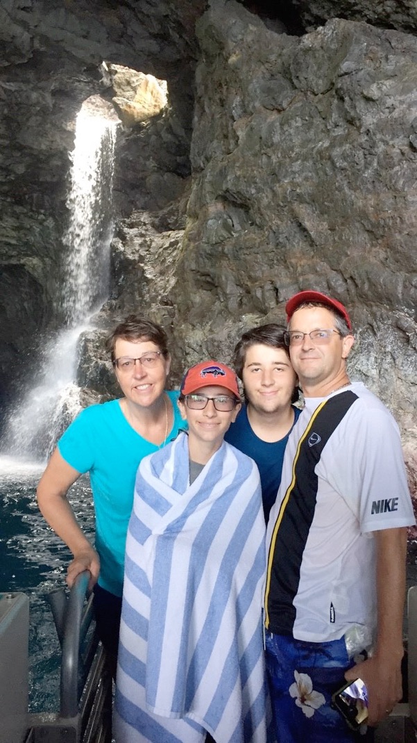 This sea cave is the second largest in the US, and it has a waterfall at its entrance, and they drove nice and slow through the waterfall on our way out of the cave.