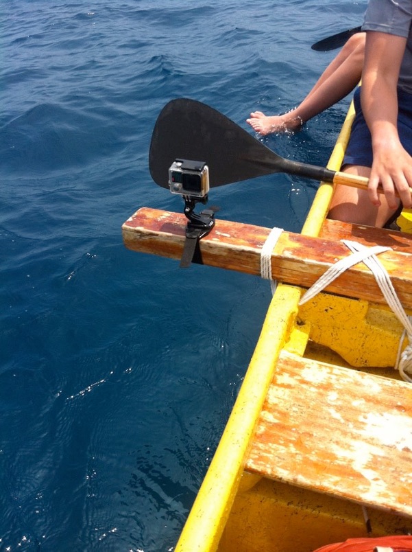 Matt quickly secured his GoPro HERO4 to the crossbar that is between the canoe and the outrigger. Then, we were paddling.