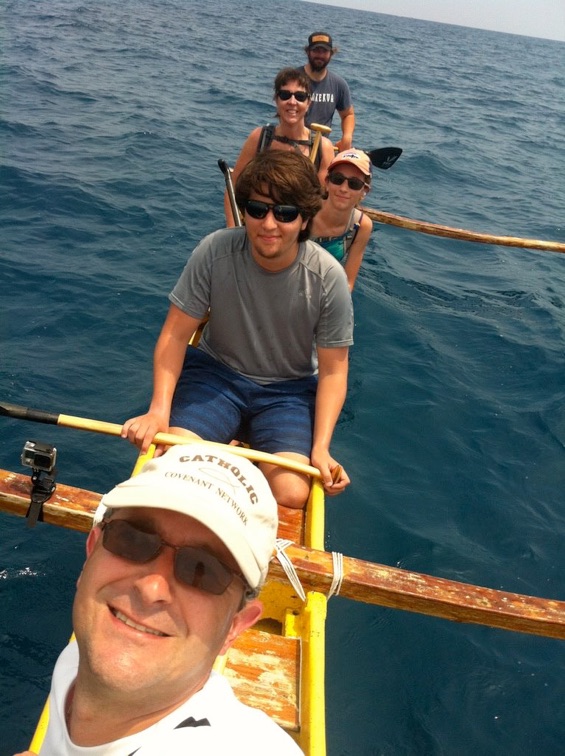 Paddling our own outrigger canoe in the open Pacific ocean... past the breakwater