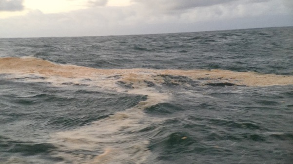 The deckhand pulled in a bucket of water; it was 107-degrees F... like a warm hot tub... safe, but warm, even at our distance.