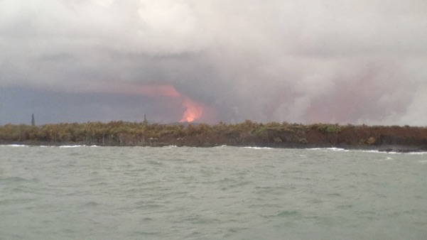 This is where we saw the lava, to the right of this USGS map, where the red text notes “active ocean entries,” our boat “sailed” in these areas, and the photos below are from here - which is an area that is a couple miles wide.