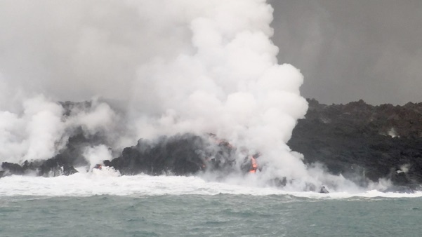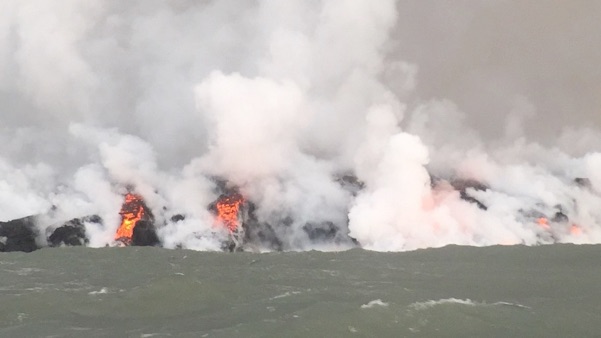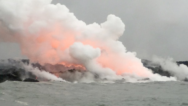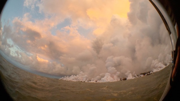 And sometimes we heard the underwater sounds of the lava rocks exploding as they encountered the water.
