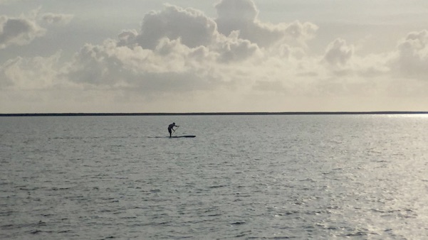 and someone paddle boarding
