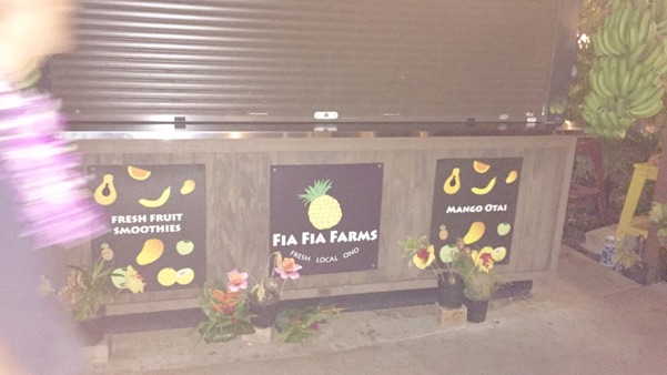 To get the drink in the cup, she cut off the top, then uses a pineapple puncher slicer to remove the inside, creating the round pineapple slices we’ve seen in stores, and leaving only the very center of the core still in the pineapple... one slice of a knife and that was removed and the pineapple became a large drinking cup... pour in your virgin pina colada and you have one happy family. Thank you, Miracle, and the lady in the Fia Fia Farms stand for helping us get that awesome pina colada!