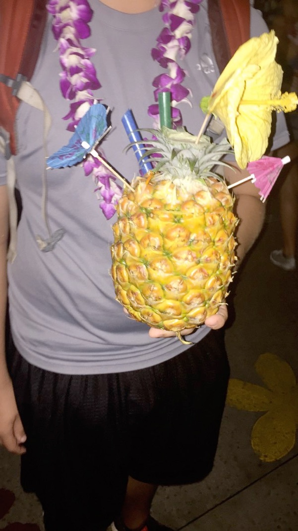 At the luau we saw they were serving non-alcoholic drinks in pineapples and confirmed they were virgin pina coladas and we were informed that they were available in the main show, HA. But they weren’t served in HA after all... BUT thanks to the helpful lady in Customer Service, named Miracle, we got one... Miracle worked to confirm where they are made, walked me over to that stand, called Fia Fia Farms, where the nice lady there made us a pina colada-in-a-pineapple just before she closed.