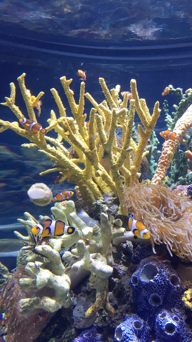 ⁃Tropical fish - parrot fish, lion fish, Nemo clown fish, ghirabaldis, and many bright coral