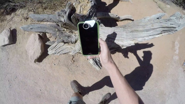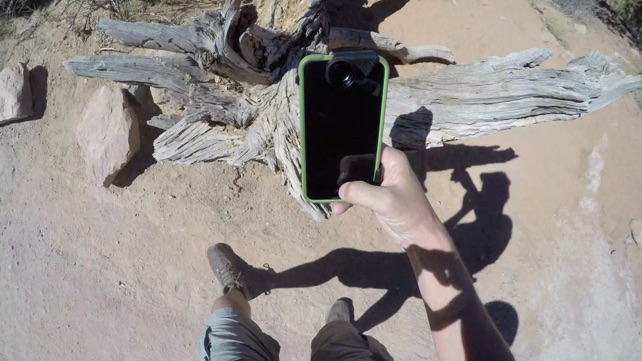 The GoPro capturing me capturing images of a dried tree on the iPhone, with Olloclip lenses.