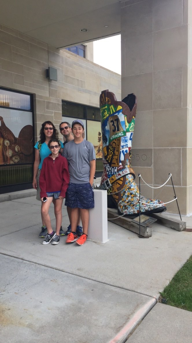 Family Photo by one of the many painted Wyoming cowboy boots all over the state
