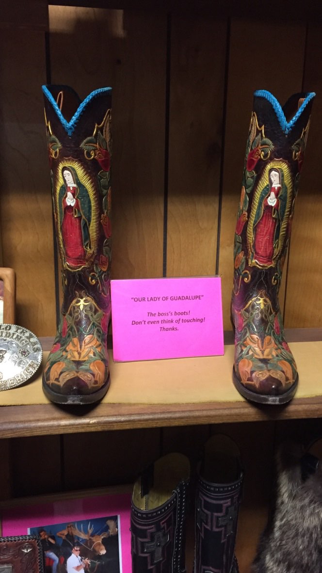 Mom and Dad left Matt and Abby to play some games and catch up on videos in the hotel room and had a “date walk” in downtown Cody. One boot store had these amazing boots dedicated to Our Lady of Guadeloupe. Beautiful!