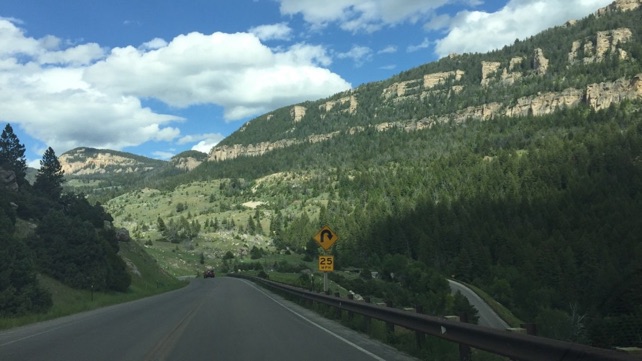 Driving through Tensleep Canyon, which has been carved by Tensleep Creek