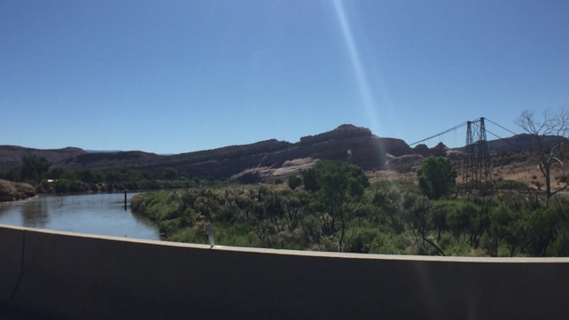 Highway 128 now has a full bridge, but motor traffic once crossed the Colorado on the Dewey Bridge, which was a suspension bridge. Sadly, an accidental fire burned most of it down and they are still working to raise the money to rebuild it.