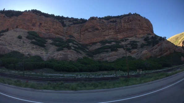 5)An almost constant downhill once we got into Utah, and impressive grades for the UP / Union Pacific railroad’s trains that paralleled the highway (actually I-80 follows the transcontinental RR, which follows the grade of the land)