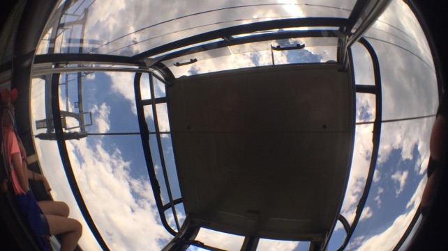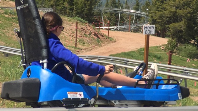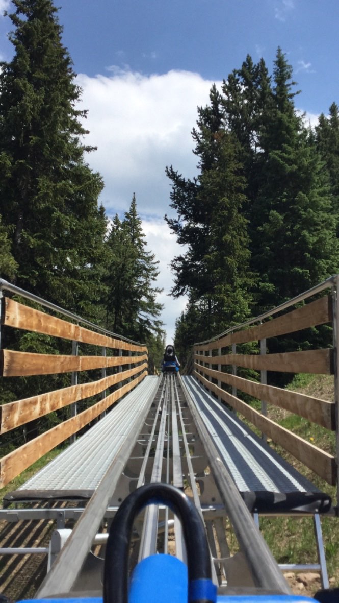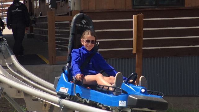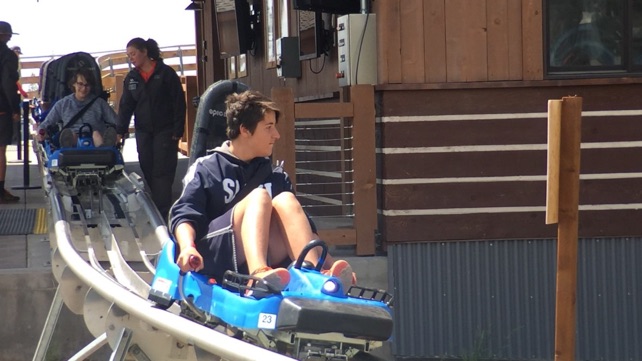 5)the kids riding the Forest Flyer toboggan / roller coaster at the top of the gondola.