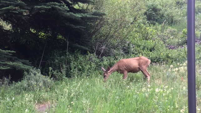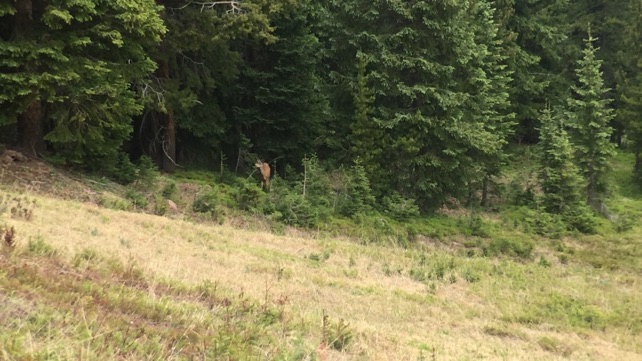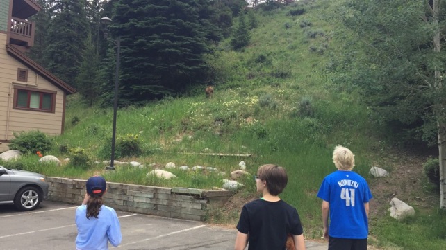 After waffles and playing some pool and some other relaxing time, we went outside, where we saw this elk. Matt joined us and shared how he was sitting on the sofa, next to the patio door, and how the elk walked right up to the patio door, looked in, and then walked away!