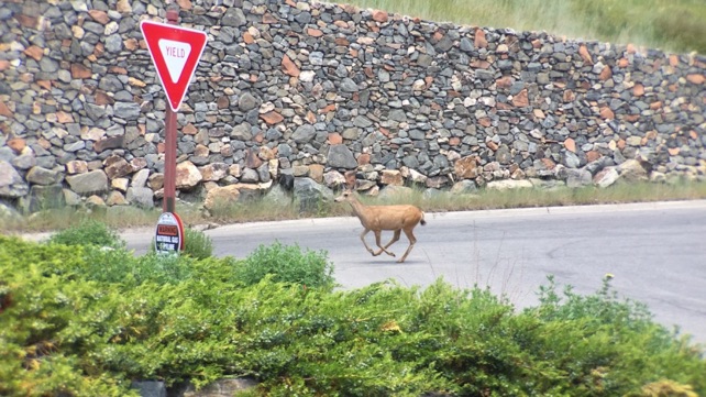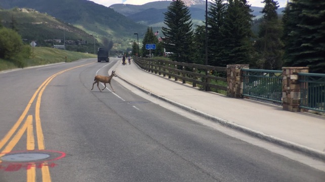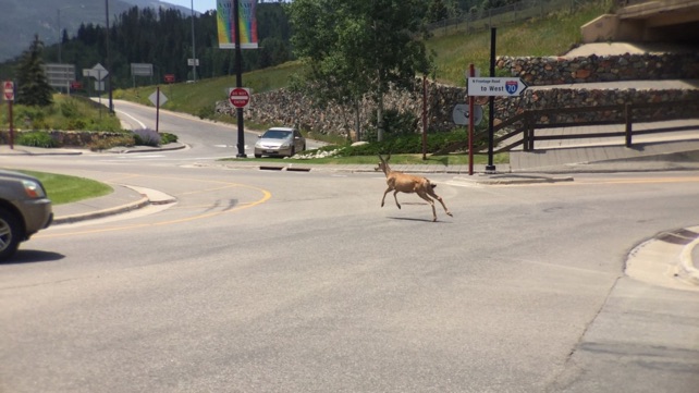 As we left, and passed through the roundabouts (which are needed because the valley just isn’t wide enough for more traditional interstate exits), the elk came running through