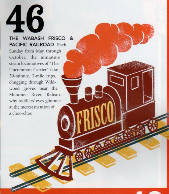 The Wabash, Frisco, & Pacific Railroad is a 12-inch gauge railroad operating in west St. Louis County. The WFPRR operates Sundays, May through October, from 11am-4pm.